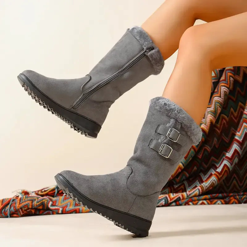 VŠESTRANNÝ A STYLOVÝ DESIGN - Snadný doplněk vašeho zimního šatníku. Klasická silueta v kombinaci se stylovým dvojitým přezkovým akcentem činí tyto boty ideálními pro kombinaci s džínami, legínami nebo sukněmi pro jakoukoli neformální příležitost.
