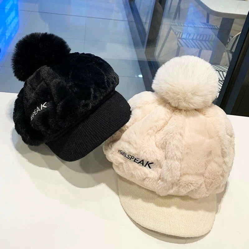 1 * Dámská zimní módní teplá čepice s krátkou kšiltovkou