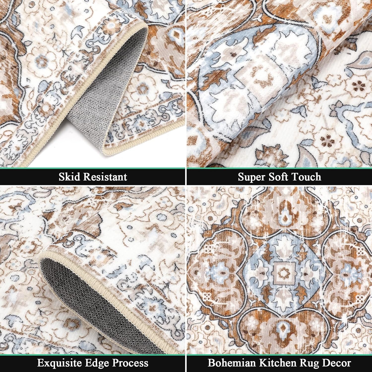 【Protišmykový kuchynský koberec】Sada boho kuchynských rohoží je vyrobená z vysoko kvalitného