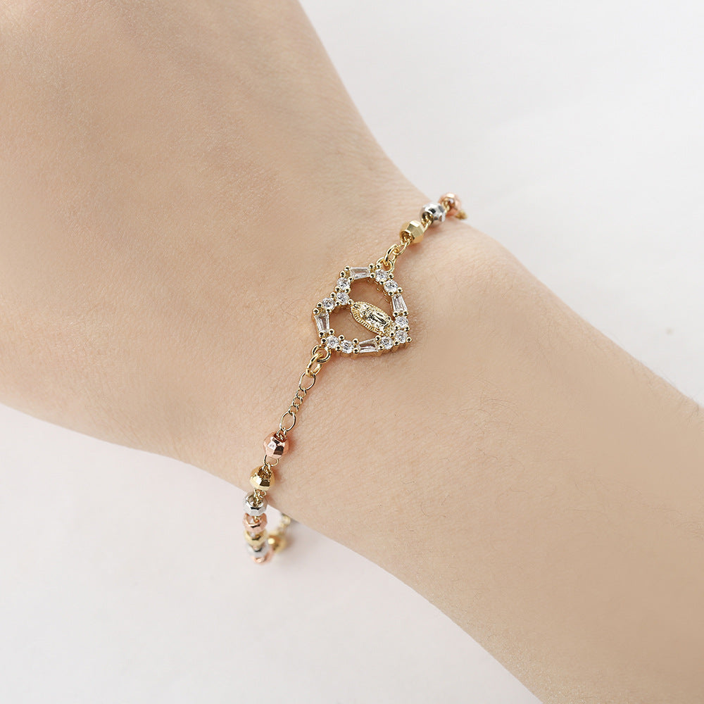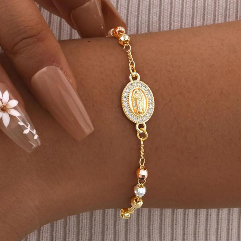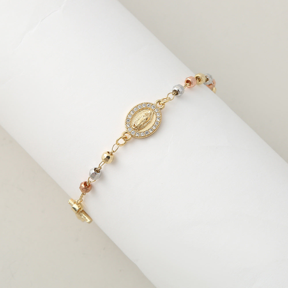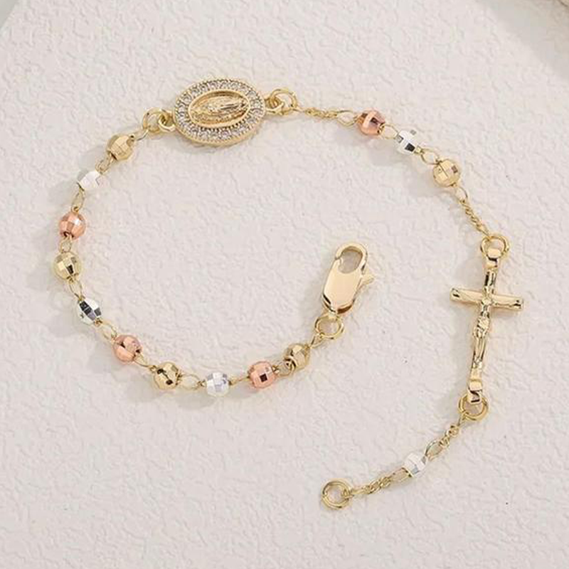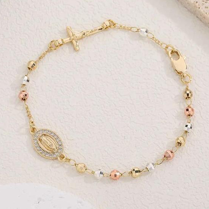 INCHES SYMBOLIC CHARMS – Tento náramok je ozdobený detailným krížikom a trblietavým medailónom zdobeným kamienkami a je elegantným vyjadrením viery a dodáva vášmu štýlu sofistikovaný a zmysluplný nádych.