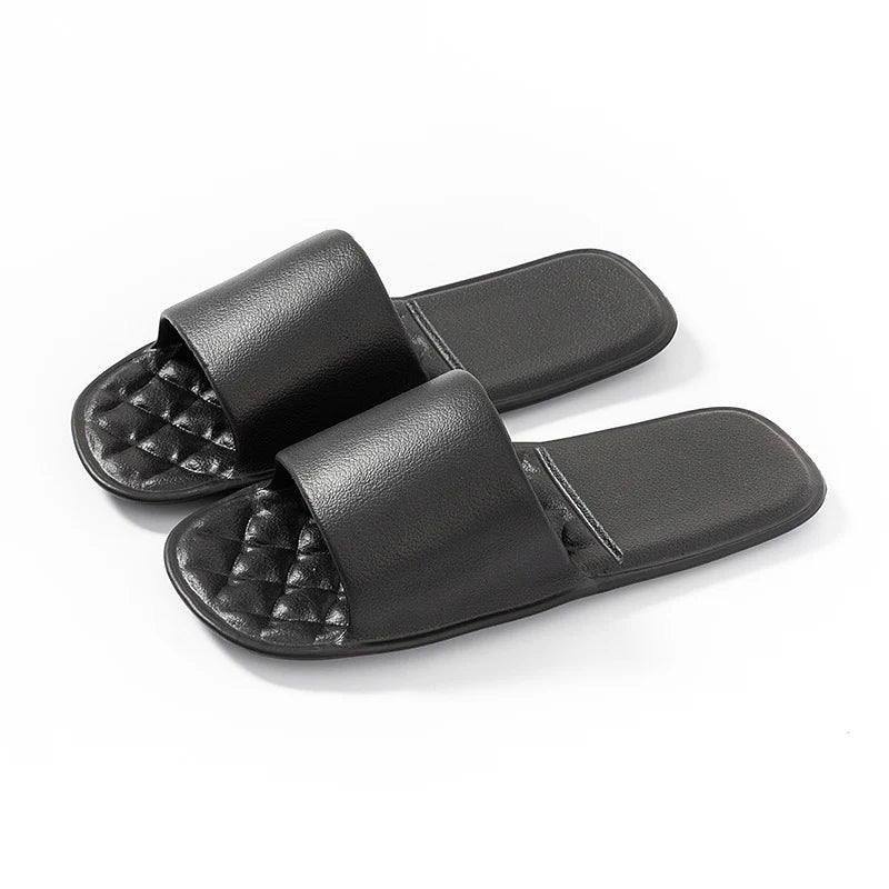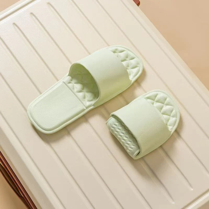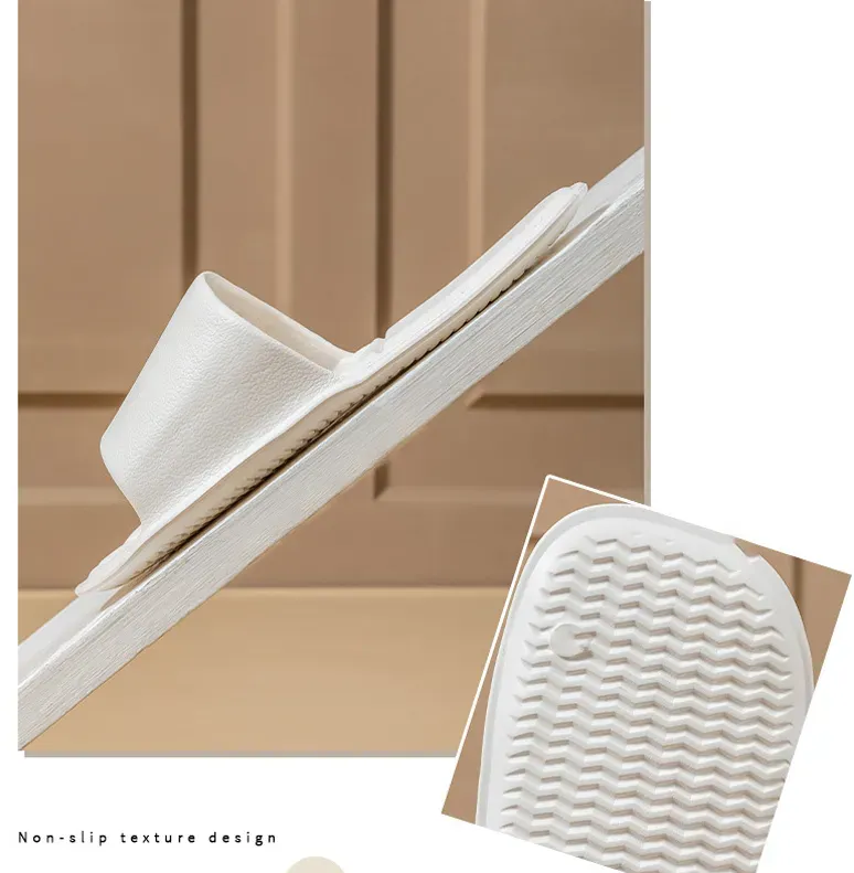 PROTISKLUZOVÝ DESIGN – Tyto jednorázové sprchové pantofle se vyznačují pečlivě navrženým protiskluzovým vzorem ve tvaru vlny, který zlepšuje přilnavost na mokrém povrchu. Vzorek zvyšuje počet kontaktních bodů, čímž minimalizuje riziko uklouznutí při sprchování nebo chůzi po mokré podlaze v koupelně. Tento promyšlený design zvyšuje bezpečnost bez kompromisů v flexibilitě, díky čemuž jsou ideální pro pobyty v hotelech, cestování nebo domácí použití ve vlhkém prostředí.