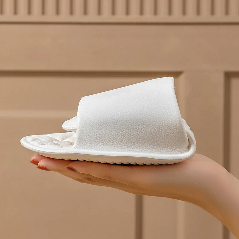 MĚKKÝ SVRŠEK – Měkký svršek zajišťuje lehké a pohodlné nošení. Pantofle jsou navrženy tak, aby si zachovaly svůj tvar i při ohnutí, a zabránily tak nepohodlí způsobenému tuhou obuví. Díky tomu jsou obzvláště praktické pro aktivity, jako je sprchování, návštěvy lázní nebo použití ve veřejných lázních, kde je potřeba jednorázová, ale pohodlná obuv.
