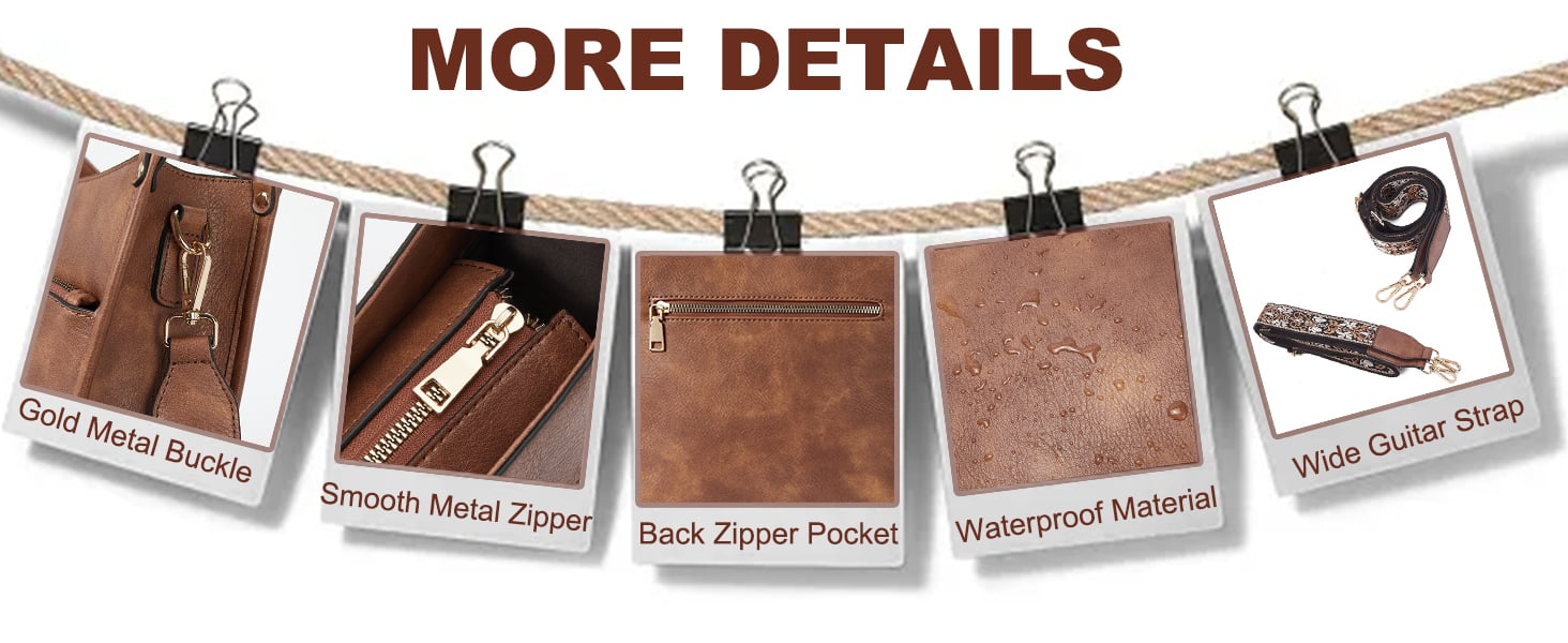 Váží pouhých 0,73 libry. Dodává se s 1 nastavitelným a odnímatelným módním širokým popruhem, lze ji nosit jako crossbody kabelku nebo kabelku přes rameno.