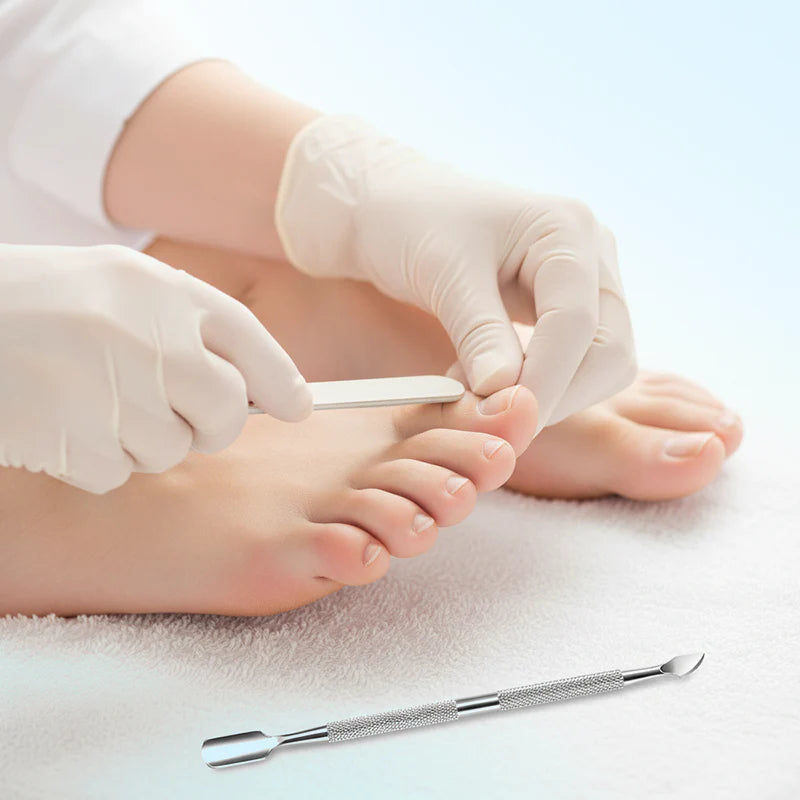 ERGONOMICKÁ A PROTISKLUZOVÁ RUKOJEŤ - Každý nástroj má texturovanou rukojeť, která poskytuje vynikající úchop a kontrolu. Konstrukce zabraňuje sklouzávání nástroje během používání, což vám umožňuje bezpečně a pohodlně provádět přesné úkony péče o nehty.