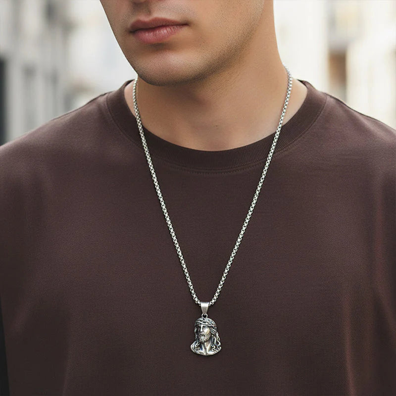 Ikonický design – tento přívěsek se vyznačuje pečlivě vyřezávaným basreliéfem zobrazujícím Krista s trnovou korunou, který ztělesňuje tradiční náboženský motiv. Důkladné řemeslné zpracování mu dodává slavnostní nádech, díky čemuž je hluboce smysluplným doplňkem pro každodenní nošení i zvláštní příležitosti.