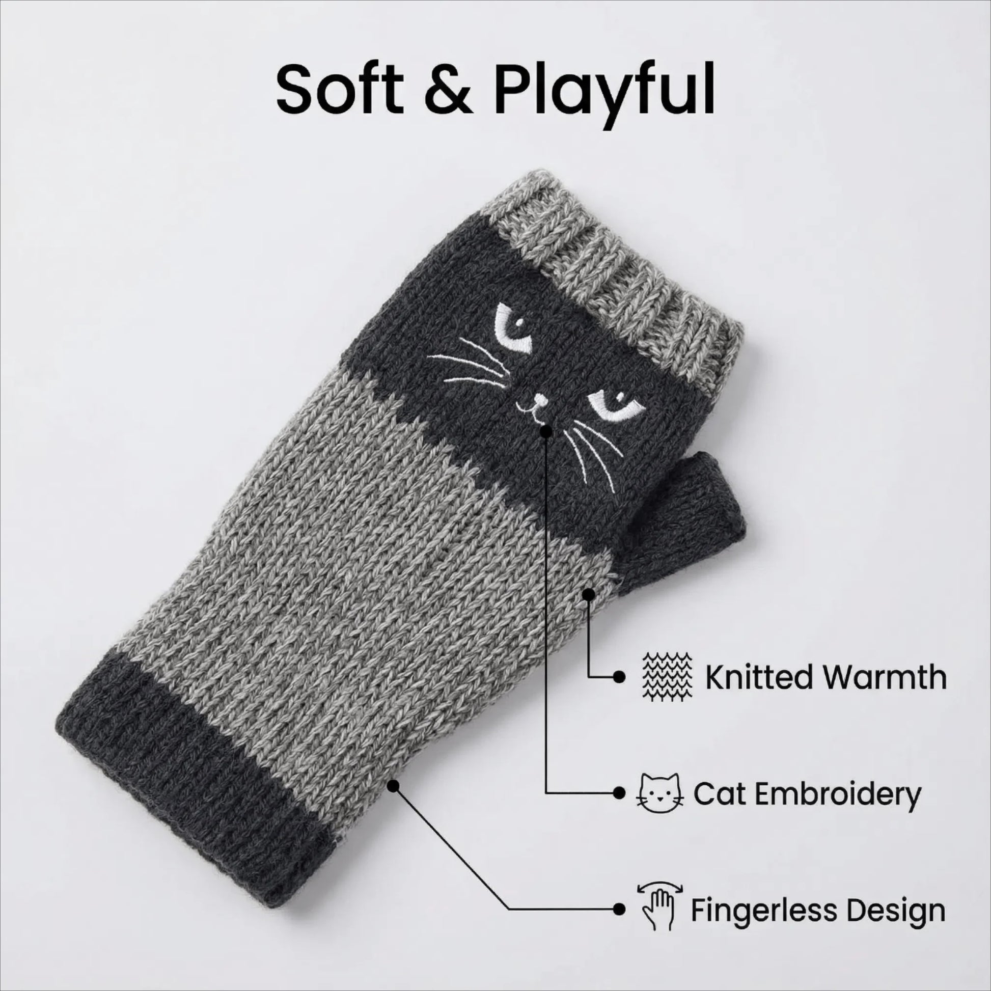 Rozkošná vyšívaná kočičí tvář dodává hravý a kvalitní jedinečný nádech, přičemž vysoce pletenina zajišťuje celodenní pohodlí a teplo.Rozkošná kočičí výšivka