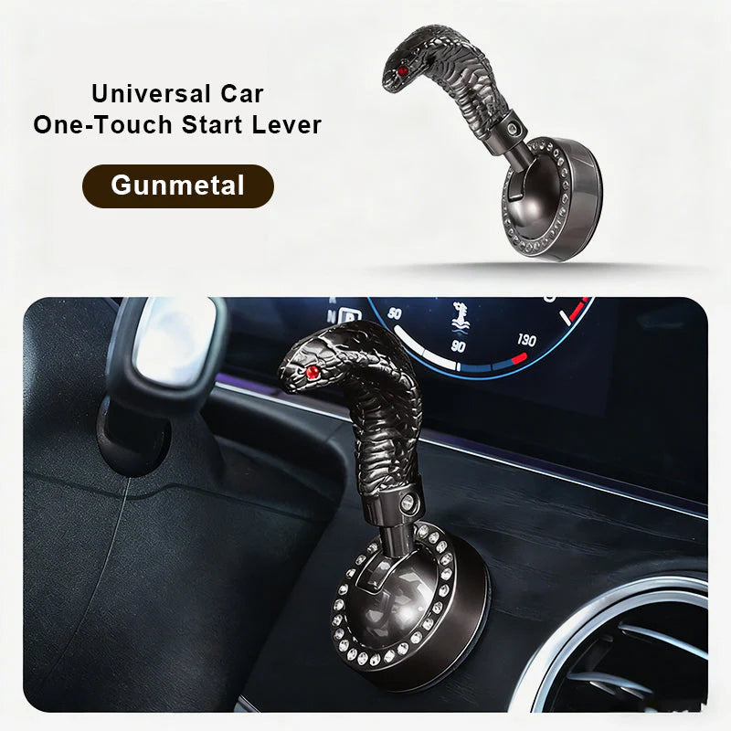Zapomeňte na nudné tovární tlačítko a použijte kovovou páčku s hadím motivem! Detailní tvar hadí hlavy a elegantní kovová povrchová úprava vnesou do vašeho interiéru sportovní luxus – každé nastartování se stane malým stylovým rituálem, který předvede váš jedinečný vkus.