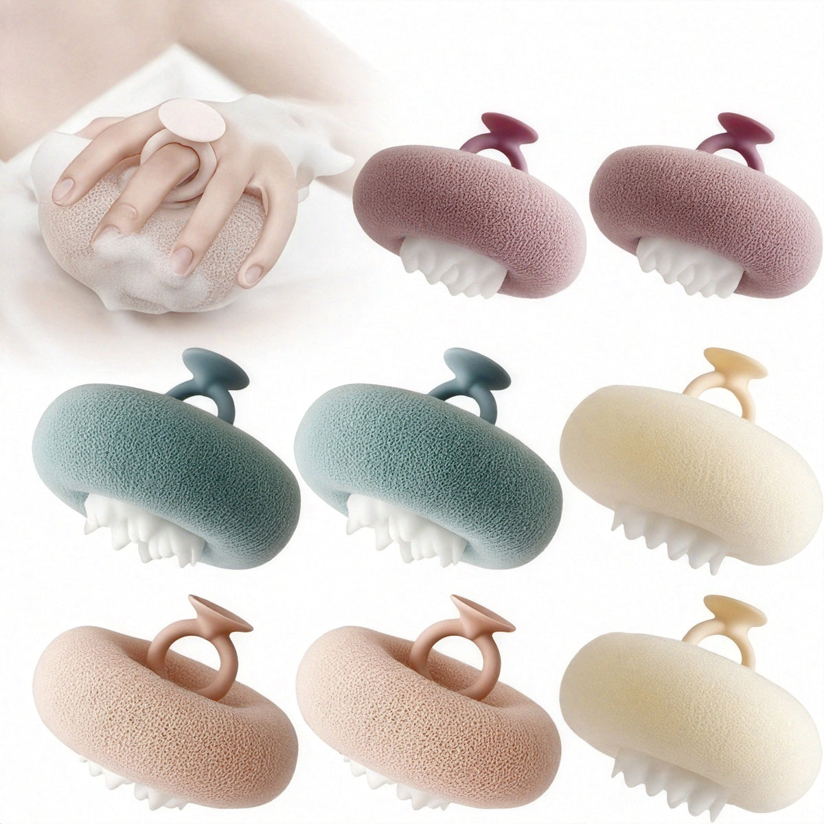 Jeden produkt, dvojí účinek! Sprchová koule s exfoliační houbou – bohaté pény pro čistotu a odstranění mrtvých buněk pro jiskrujoucí pokožku.