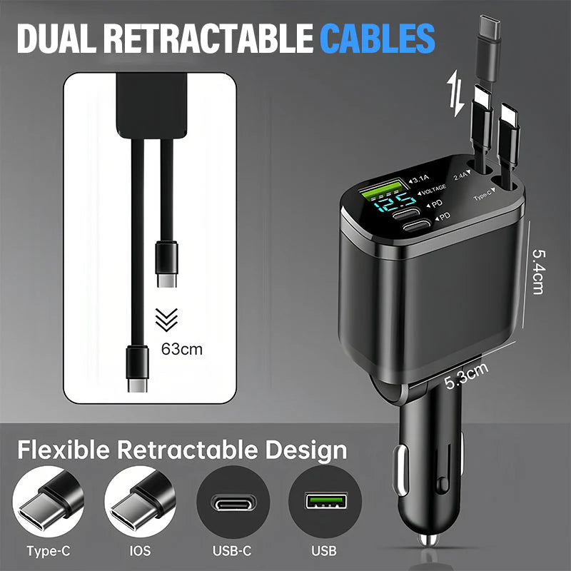 DVOJITÉ ZAVÍRACÍ KABELY - Tento Bluetooth přijímač je dodáván se dvěma zatahovacími nabíjecími kabely typu C, které umožňují snadné nabíjení jednoduchým zatažením a uvolněním. Rozlučte se s nepořádkem s kabely a užijte si rychlejší nabíjení a rychlejší obnovení baterie telefonu.