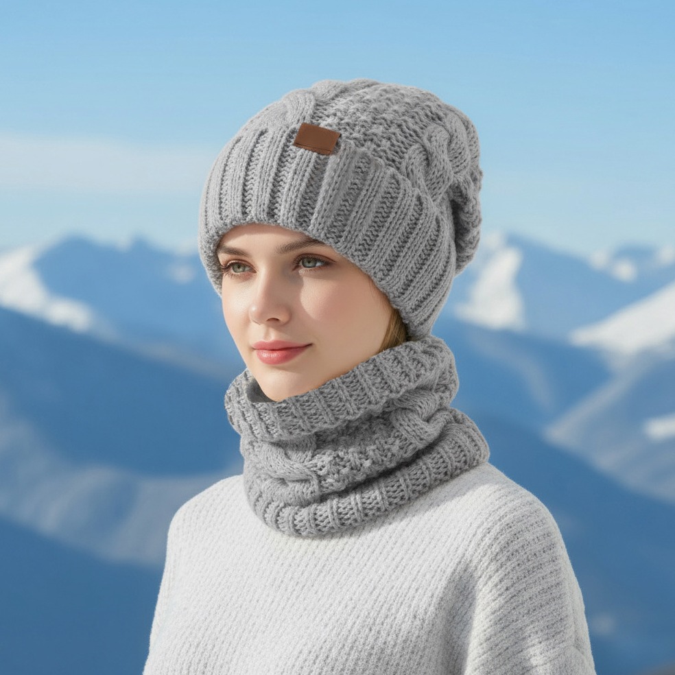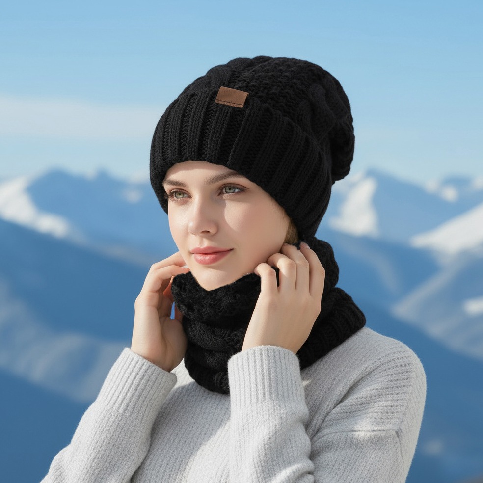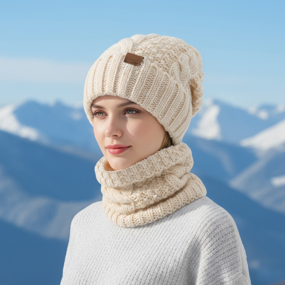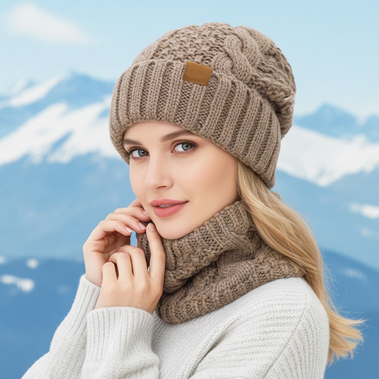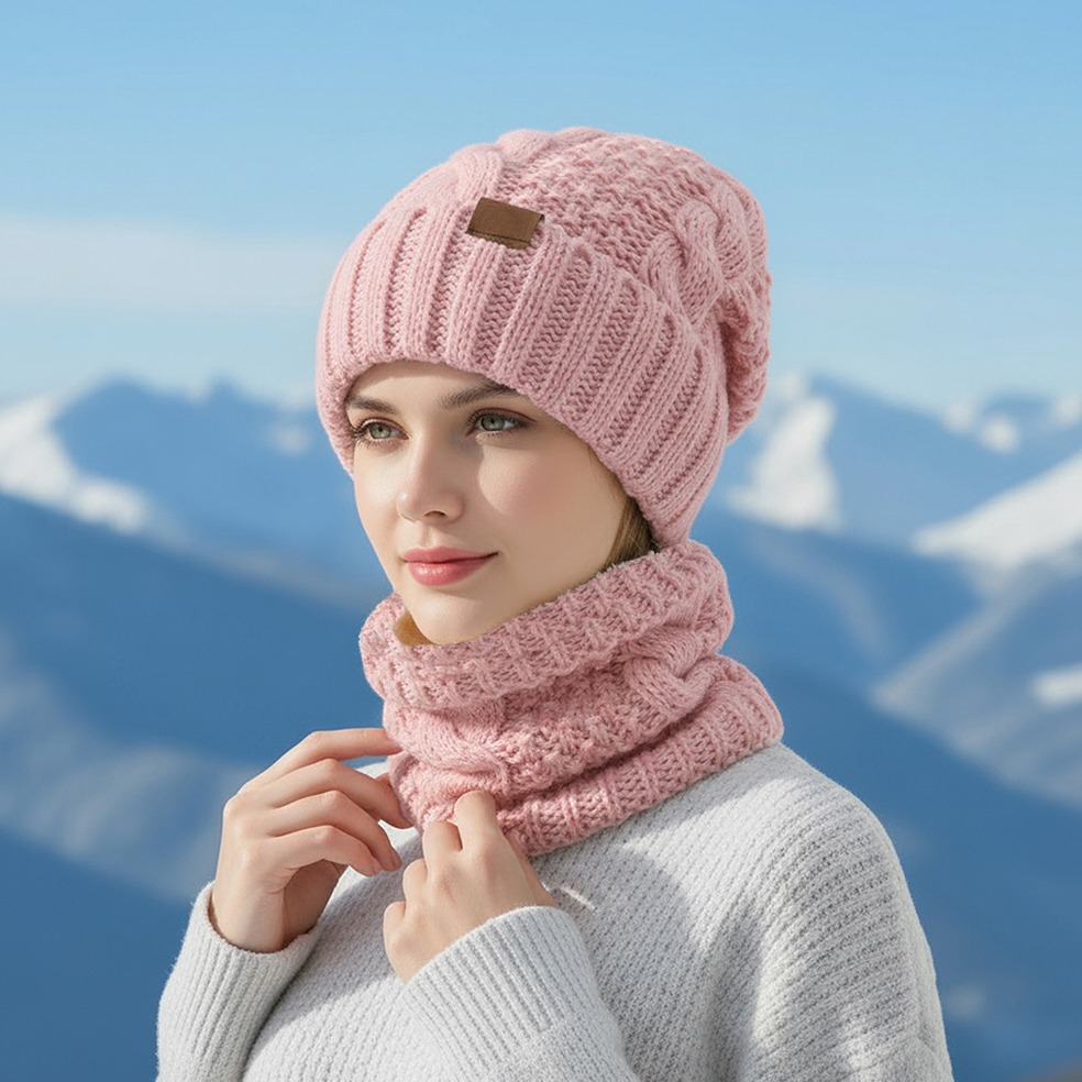 2pcs set winter hat neck scarf set womens warm hat earmuff hat for winter outside sports skiing running Product details 1